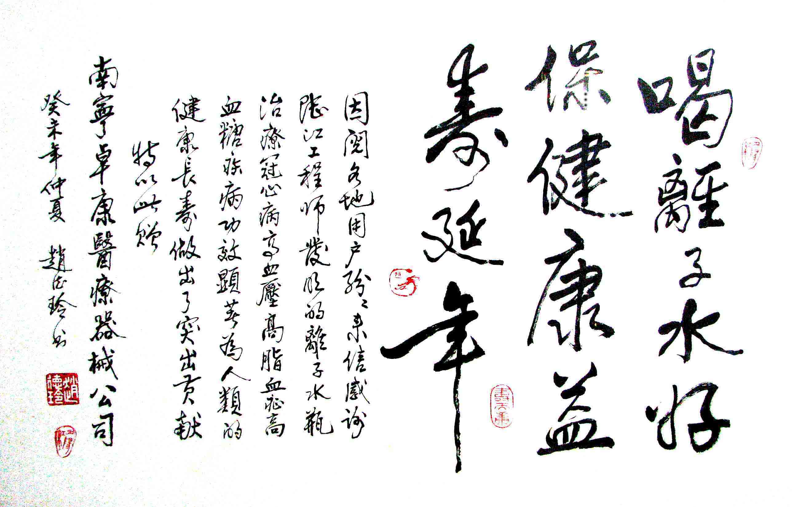 - -- 幾千年來,人類靠醫(yī)藥不能根治冠心病、高血壓和糖尿病,如想根治,那是夢(mèng)想??墒牵覐闹袊A(chǔ)醫(yī)學(xué)研究成果受到啟發(fā),研發(fā)了一種發(fā)明產(chǎn)品,處理出微小分子團(tuán)水讓人飲用,實(shí)現(xiàn)了人類這一夢(mèng)想!患者飲用后遠(yuǎn)離了冠心病、高血壓和2型糖尿病。這一成果曾經(jīng)過臨床試用和專家鑒定,作為準(zhǔn)字號(hào)醫(yī)療器械讓廣大患者飲用,療效進(jìn)行跟蹤調(diào)查。很多患者的反饋情況令人感動(dòng),我放在公司網(wǎng)站上(nnzk.com),震撼了醫(yī)學(xué)專家,也使廣大同胞受到啟發(fā)。人們盼望飲用它給細(xì)胞補(bǔ)水,治愈多種病癥,既省錢,又安全,而且延長壽命。