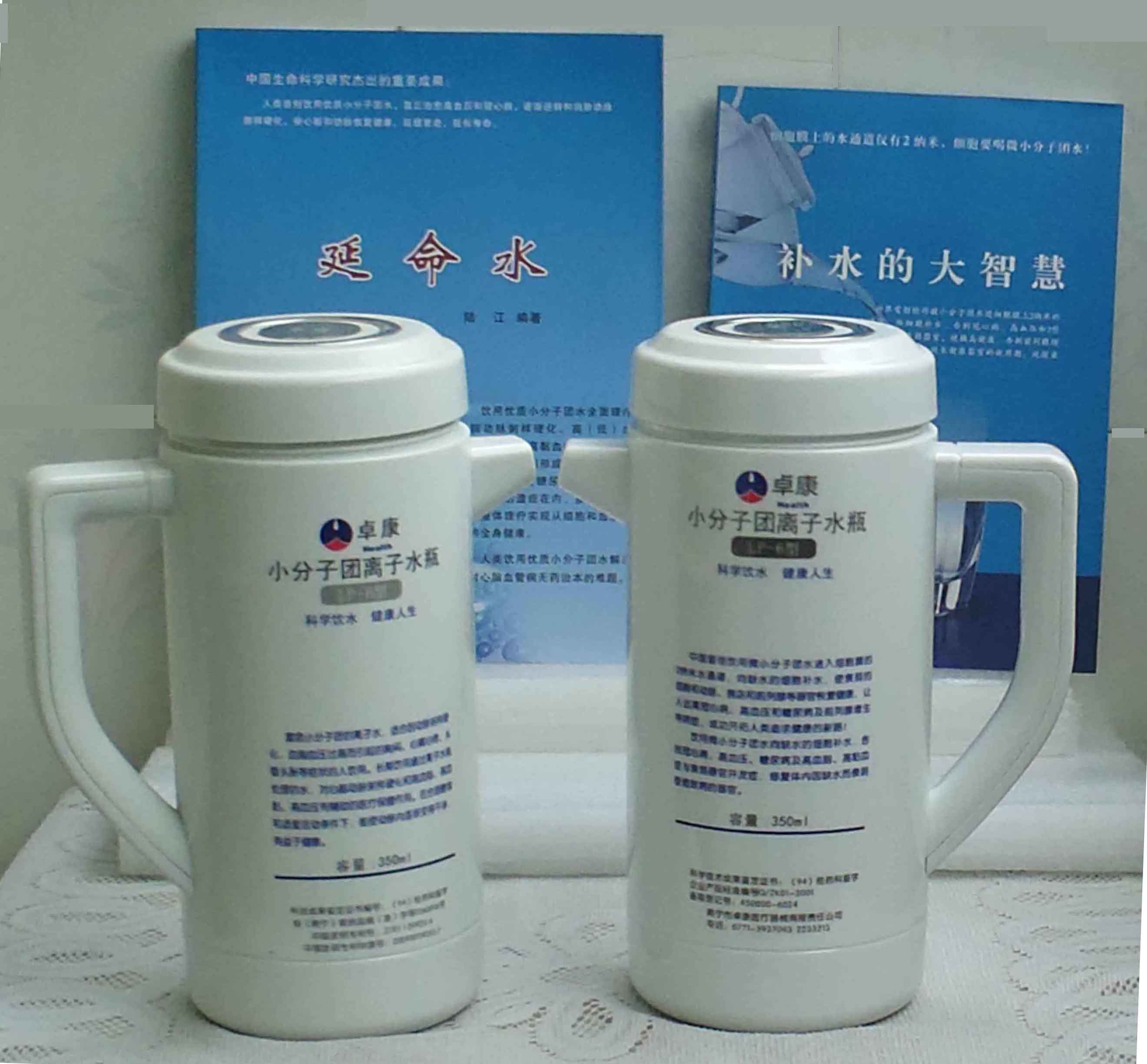本品大量用戶的使用效果表明,能治愈冠心病、腦動(dòng)脈硬化、原發(fā)性高(低)血壓、高血脂、高粘血癥、高血尿酸癥(痛風(fēng))和2型糖尿病、衰弱器官并發(fā)癥(前列腺增生、腎衰與尿毒癥)及中風(fēng)后遺癥等療效好。產(chǎn)品配信譽(yù)卡。使用壽命30年,不換芯,易清洗。團(tuán)購優(yōu)惠。從郵局匯款,匯費(fèi)1%,地址按本頁下方地址、聯(lián)系人寫。從銀行匯款,請(qǐng)點(diǎn)擊[聯(lián)系匯款]欄,從工商銀行匯款,建設(shè)銀行、農(nóng)業(yè)銀行匯款,均免收匯費(fèi),匯款后20--30分鐘內(nèi)發(fā)短信,可用微信轉(zhuǎn)帳,均免匯費(fèi),微信號(hào)即手機(jī)號(hào)13768308380。匯款后,告知你的姓名和地址,我公司聯(lián)系人手機(jī)號(hào)是:13768308380。卓康牌離子水瓶為我公司獨(dú)家生產(chǎn),郵購產(chǎn)品配《補(bǔ)水的大智慧》彩印書一本,另配四季出版社出版的新書《補(bǔ)水的大智慧》一本,并配光盤一張(含央視主持人釆訪陸江的對(duì)話視頻)。目前市場(chǎng)和"淘寶網(wǎng)"上有人兜售假冒的偽品,望讀者審察辯別真?zhèn)?,造假者剽竊假冒本公司的各種認(rèn)證、獲獎(jiǎng)獎(jiǎng)項(xiàng)、專利號(hào)和外包裝盒上的中英文字,包括科技成果的鑒定意見等,請(qǐng)讀者注意防偽。如何識(shí)別假貨?已經(jīng)買了假貨怎么辦?(請(qǐng)點(diǎn)擊[打假掠影][打假掠影])。